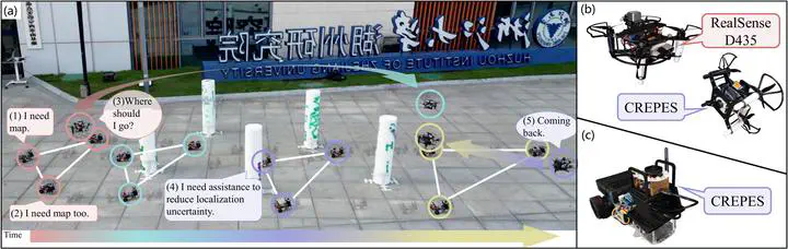 Multi-robot system is desired to achieve global cost-efficiency by fully utilizing individual advantages. For example, leveraging unmanned aerial vehicles’ (UAVs’) agility for inspection and ground vehicles’ (UGVs’) capability for heavy-duty tasks. Coordinating the motion of multiple robots smartly is complex and it becomes more challenging when robots in the swarm are not equipped with sufficient sensors for environmental perception (e.g. in our case only one robot has a depth camera). In this letter, we propose a tightly coupled systematic framework to navigate a swarm composed of UAV and UGVs in unknown scenes. The system has only one depth camera with a field of view for environmental perception. We fully explore the cooperation between robots by proposing a Sequential Exploration and Aiding Localization (SEAL) planning strategy for the UAV and a Collision-Adaptive Trajectory (CAT) optimization for UGVs. The UAV assists UGVs’ localization with relative pose estimation and own global localization, meanwhile, it focuses on exploration to provide UGVs with abundant environmental information. The UGV team can navigate safely and autonomously in obstacle-rich environments and even maintain formations with only the wheel odometer and UAV’s assistance using CAT optimization. Our method is validated both in simulations and real-world experiments indoors and outdoors.
